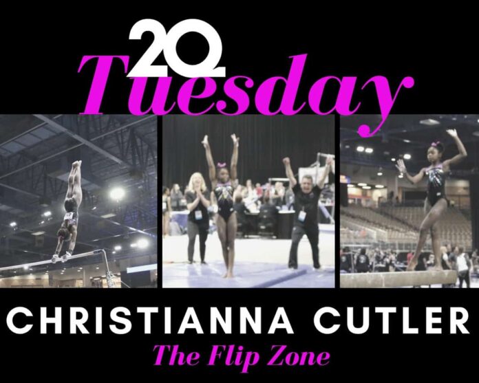 It’s Tuesday!! That means it is 20 Questions Tuesday! Today we are meeting Chris Cutler from The Flip Zone in Plainfield Indiana. Chris was recently a featured Spotlight athlete as well after catching our eye as a first year Level 10 in 2020. Chris, who is a powerful athlete, competed at the 2019 Eastern National Championships where she opened her floor routine with a double pike. You can definitely tell that this young athlete has the potential to be a power player in Region 5