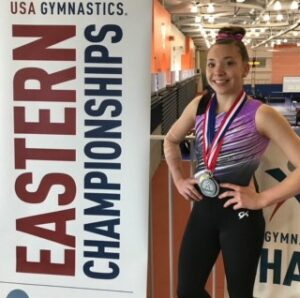 Our next 20 Questions Athlete is Mia Figola, from Legacy Elite in Illinois. Mia is a 2018 Level 9 Eastern National Champion and medalist. Mia is a solid competitor who shows great skills all over the gym and well as a mixture of power and grace. My favorite event to watch Mia on is both the beam and the floor, her floor routine moves effortlessly and is engaging and her beam routine is confident and sharpe. Mia certainly is an athlete to keep an eye on this season. Let’s get to know Mia a little bit better as she heads into the new competition season.