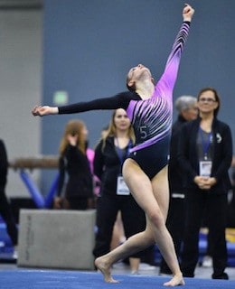 Most Memorable Gymnastics or Nationals Moment? My most memorable gymnastics moment is winning state meet as a level 10 team in 2018. Our team worked really hard the whole season and it was a really rewarding moment. My most memorable nationals moment is winning the team title in 2019. Our whole team was friends and most of us had competed together before, and it was really exciting to win with friends from across the region.