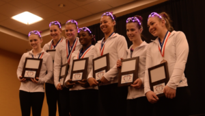 with her 38.175. Chloe Bellmore from Twistars finished in the top 10 with her 8th place 37.8 all around along with 8th on the vault 9.625. Isabel Redmond picked up two medals on the uneven bars 5th 9.625 & the balance beam 4th 9.55. Top’s Brooklyn Sears broke into the top 10 on bars with her 9th place 9.55. Karlie Franz of Hunts vaulted into the top 1o with her 8th place tying 9.625 score for her Yurchenko full. The Junior F’s became the National Team champions and giving Region 5 its 2nd team title of the weekend beating the competition by almost a point and winning 3 out of the 4 events. This group will be featured in the upcoming Region 5 Uncovered.