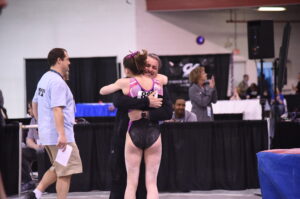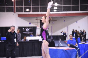 Tell us how your meet went today? Walk us through each moment of your day, warm ups, events etc…. My meet went really good. I was a little nervous during warmups. It’s been a long season and I was just thinking about how I wanted to finish out my last competition strong. Floor started out pretty good. All of my warm up passes were great and I had a lot of confidence during my routine. On practice day I had a little trouble with vault, but my warm up turns were good. On my first vault, I landed a little short and took a few steps forward. I knew my second vault had to be good, so I made sure to be ready for the landing. The second vault was much better. We moved onto bars and I was feeling more relaxed. My warm up went great and I had no trouble with any of my skills. I was second up, which was good because I didn’t have to wait to long to go. When I landed my dismount, I felt a lot of relief. I had to wait a while before we rotated to beam, so I tried to stay warm while everyone else