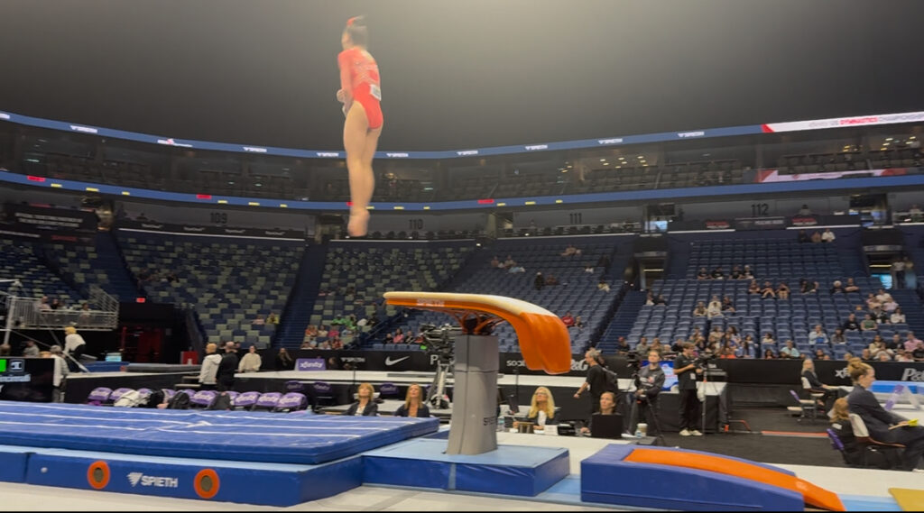 Though the arena wasn’t filled with fans, those who attended showed their knowledge and excitement for all the athletes especially when Tiana Sumanasekera did her double layout to split jump that might have hit the Smoothie King rafters.