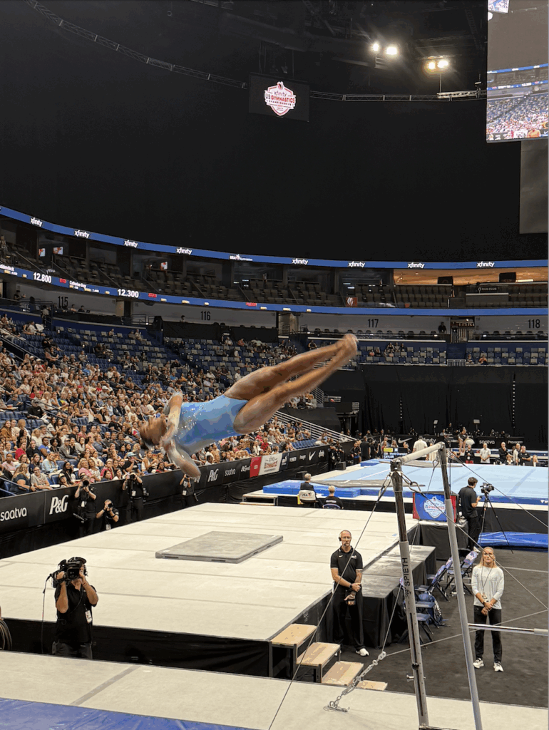 Region 5 had two athletes compete on day 2 of the 2025 Xfinity US Championships. In the Junior Session, Elaina Sliney from Cincinnati improved her all around score by almost a point scoring a 49.55 and taking home a 5th place finish on vault due in part to her beautiful Yurchenko Full for a 13.3 in day 2.