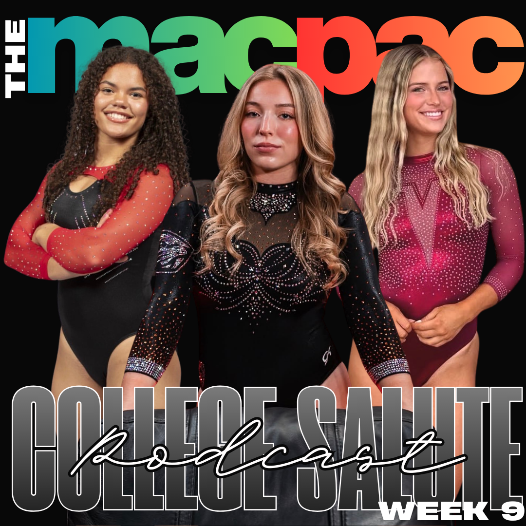 Kim’s last time in the chair for this season and there was a lot going on boxes jumping in and out, its the Drake Dawson show at NIU and Iowa and OSU had a good fight going on but Iowa has a Tyson, It might be the Choe Show for Illinois but it was a vault clinic at Oregon State, we got dancing, props and a whole production from ISU, Did Sam Peszak make a comeback and compete for CMU, Olympians galore at Stanford or maybe soon to be, a couple deltchevs, a double layout that will make your mouth drop and a possible new career as a pep rally hype women that and more lets rap on Week 9