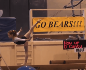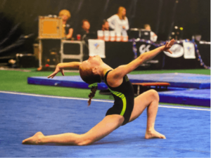 level 10 state meet in 2017, I was doing a backwards shoulder roll in my floor routine, and I got stuck on my bun. Instead of continuing the choreography that I had down on the floor, I stood up and held a